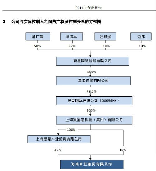 此外,海南礦業(yè)、復(fù)星醫(yī)藥、上海鋼聯(lián)三家公司2014年年報(bào)都顯示,公司實(shí)際控制人同為郭廣昌。