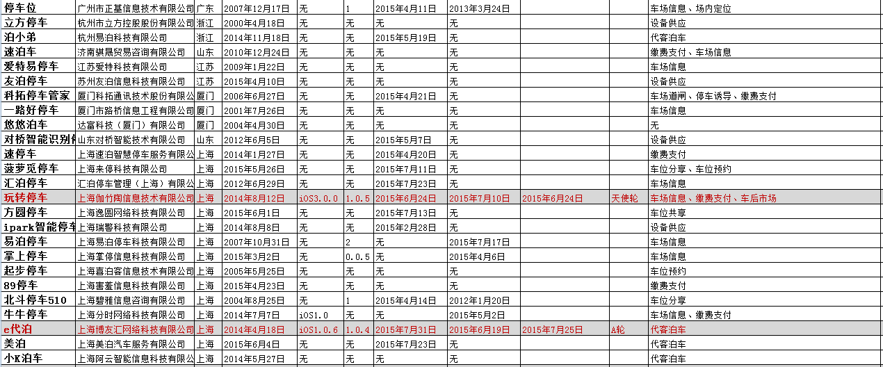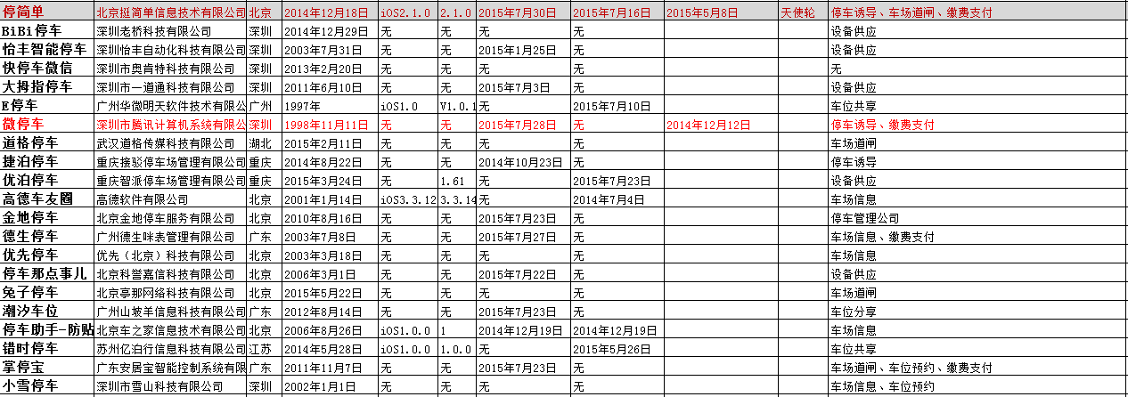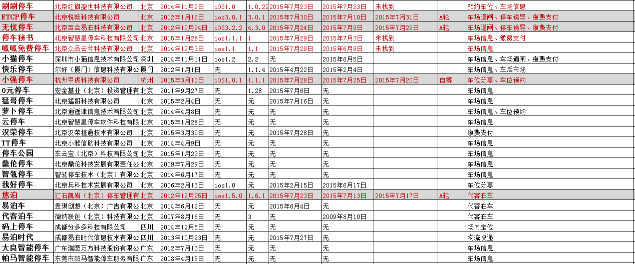 后續(xù)我們會(huì)根據(jù)手機(jī)APP端的上線時(shí)間,軟件的版本更新頻次,以及各家APP的iOS版本及Android版本的開發(fā)情況進(jìn)行比對篩選,從百家停車公司中挑選出一些“入圍選手”。