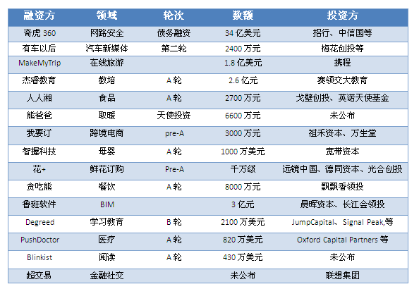 1月8日融資報告:奇虎360、有車以后、MakeMyTrip、杰睿教育、人人湘、熊爸爸、我要訂、智握科技、花 +、貪吃熊、魯班軟件、Degreed、PushDoctor、 Blinkist 、超交