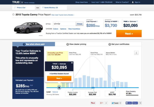 TrueCar應該是目前最接近“汽車電商”概念的公司了,他也經(jīng)常被作為易車、汽車之家等國內(nèi)汽車網(wǎng)站轉(zhuǎn)型的范本。TrueCar2014年5月在美國納斯達克證券交易所上市,并在此后一段時間內(nèi)受到熱捧,