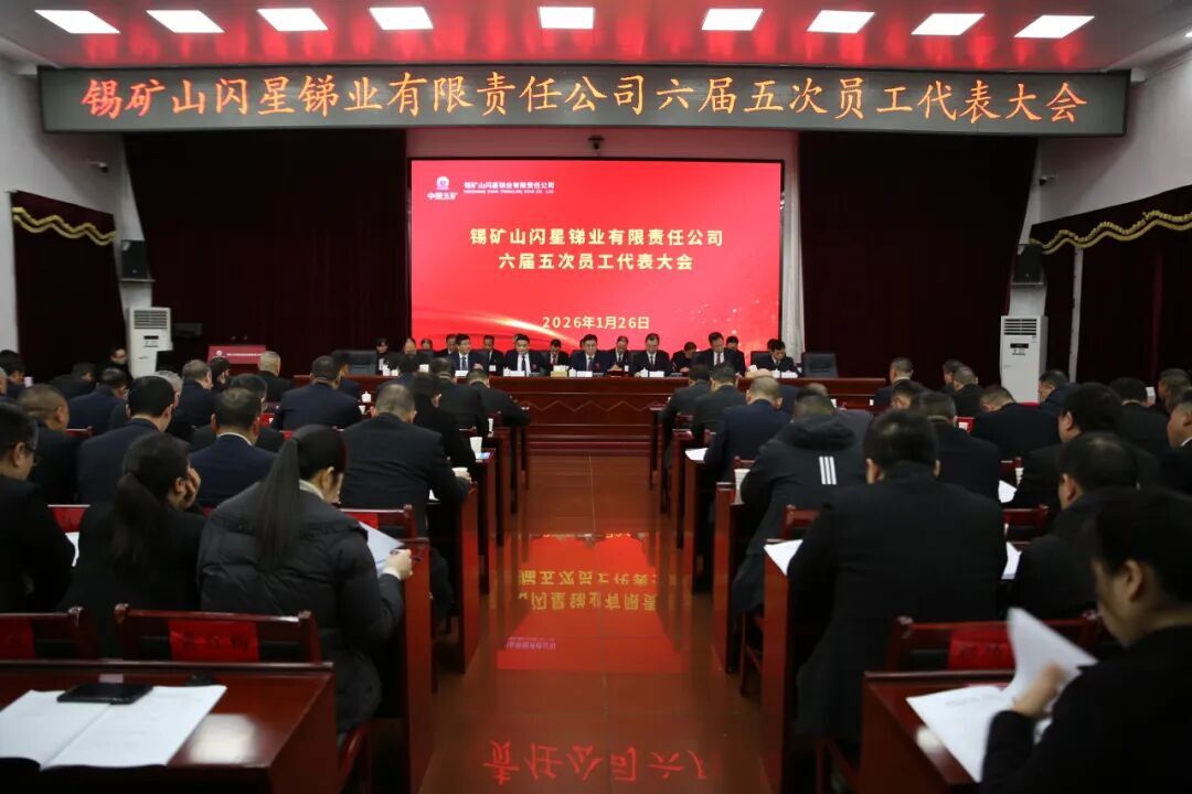 會議通過了《關于行政工作報告的決議》《關于福利費、業務招待費2025年使用情況和2026年預算安排意見的報告的決議》《關于錫礦山閃星銻業有限責任公司2026年度經營業績責任書(草案)的說明的決議》《關于基層管理及專業技術人員退線工作的指導性意見(草案)的決議》;李加生同志代表公司黨委對員工代表意見建議進行了答復;會議表彰了2025年度公司先進單位、勞動模范等獲獎集體和個人;簽訂了2026年度單位績效考核任務書、2026年中層管理人員經營業績任務書、2026年度健康安全環保工作目標管理責任書;與會人員集體觀看了視頻《風卷紅旗過大關——錫礦山銻業2025年大事記》。